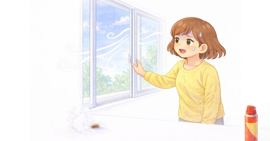 数分でも換気を行うことで、空気中に残った成分の影響を減らしやすくなります。