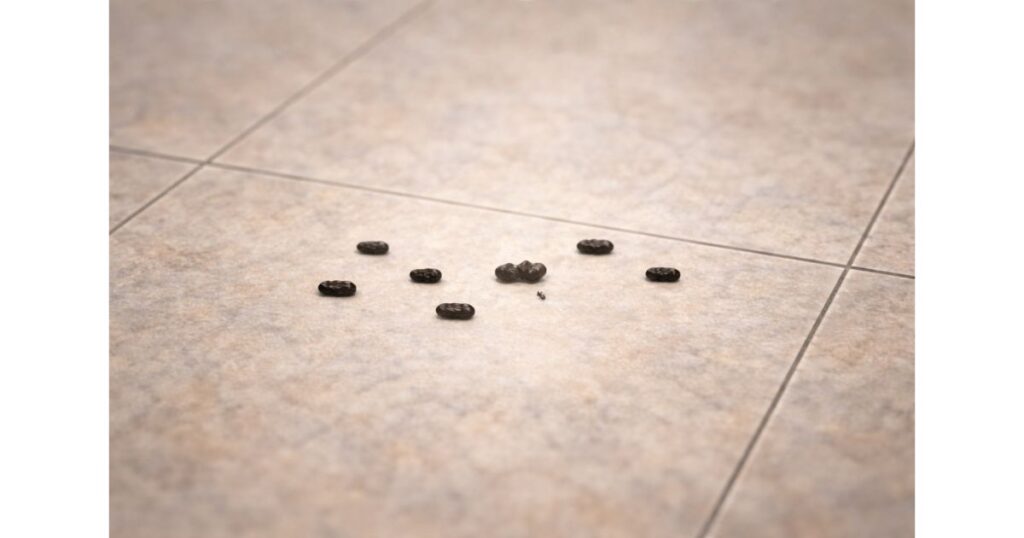 床や棚の上に小さな黒い粒が複数散らばっている場合は、