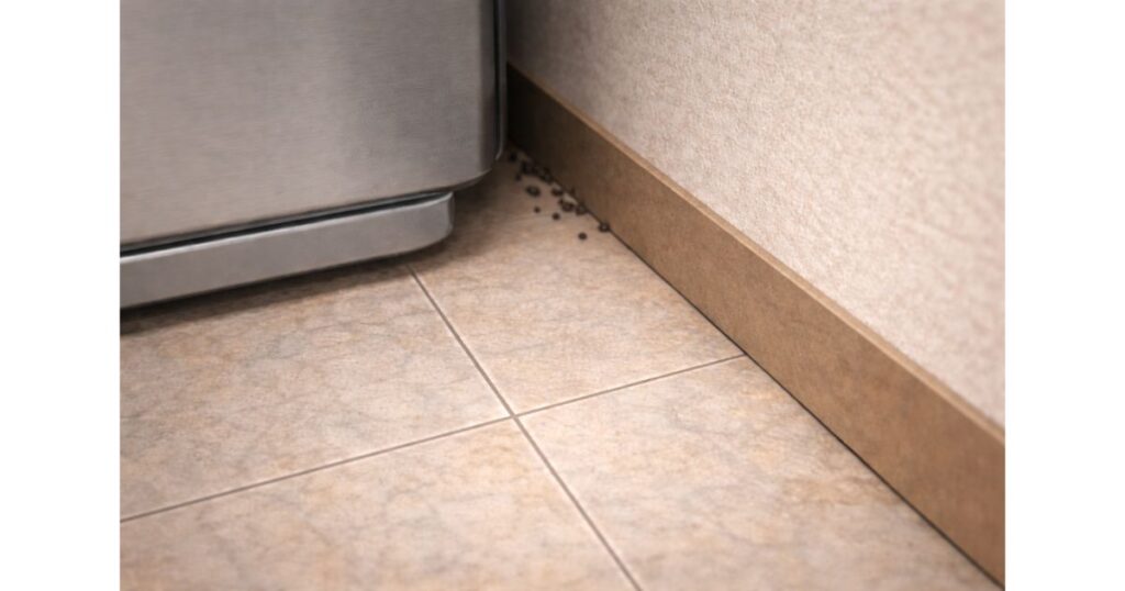 フンの落ちている場所は、ゴキブリの活動範囲を推測する手がかりになります。