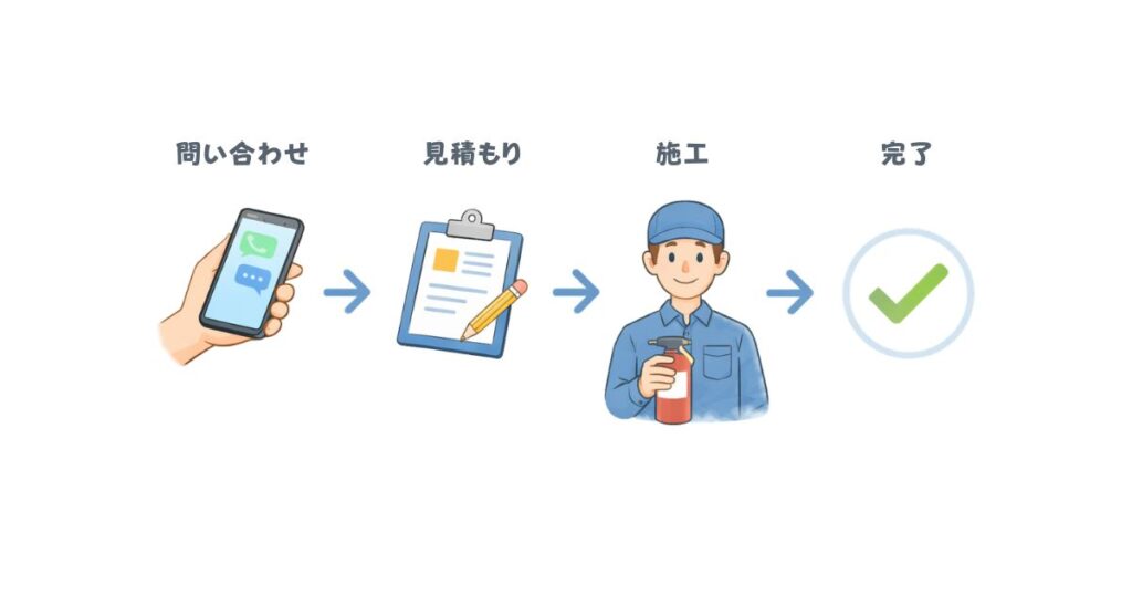 問い合わせから施工完了までの流れは、当日対応が可能なケースもあり、多くは数日以内で進みます。