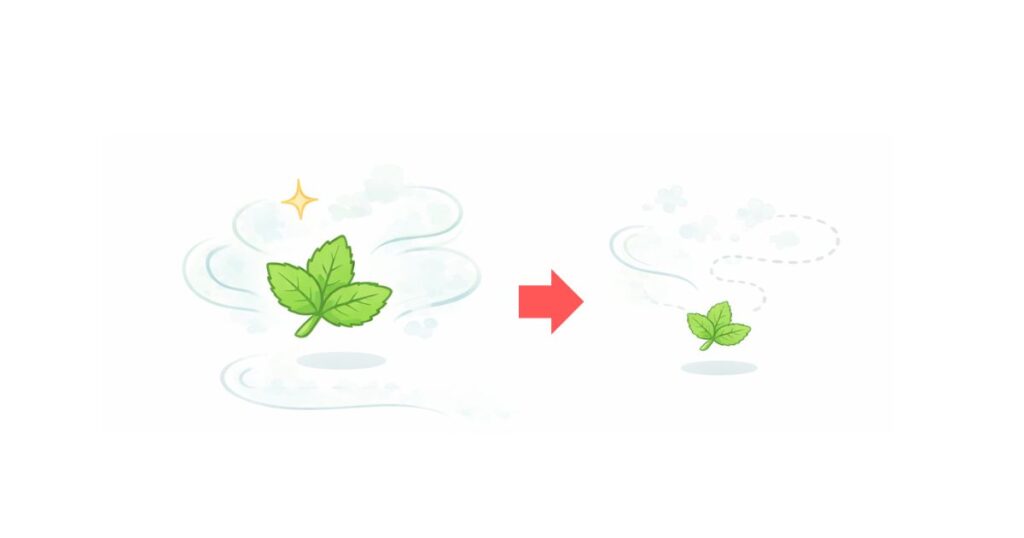 メントールは揮発が早く、塗布・設置から数時間で香りが弱まります。