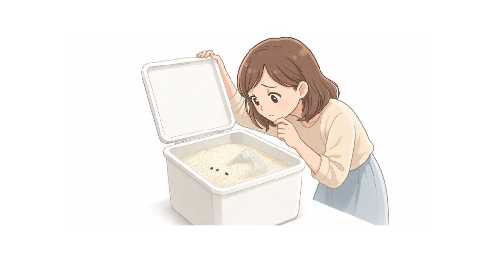 米びつを開けたときに異臭を感じる場合は、ゴキブリの痕跡である可能性が高まります。米本来のにおいと明らかに異なると感じたら、他のポイントもあわせて確認してください。