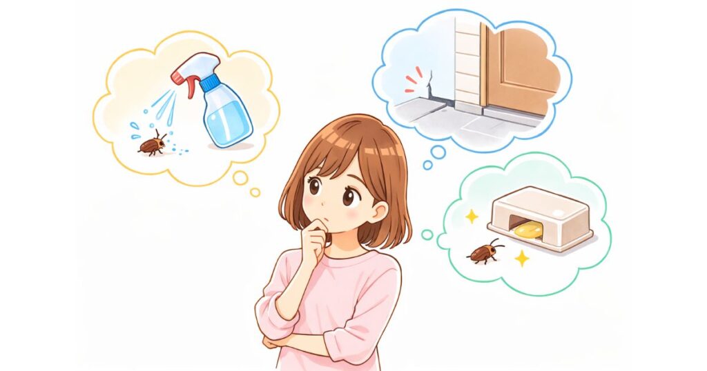 繰り返し出てくる場合の対策は、ゴキブリを再発させないための考え方をまとめた記事を参考にしてください。