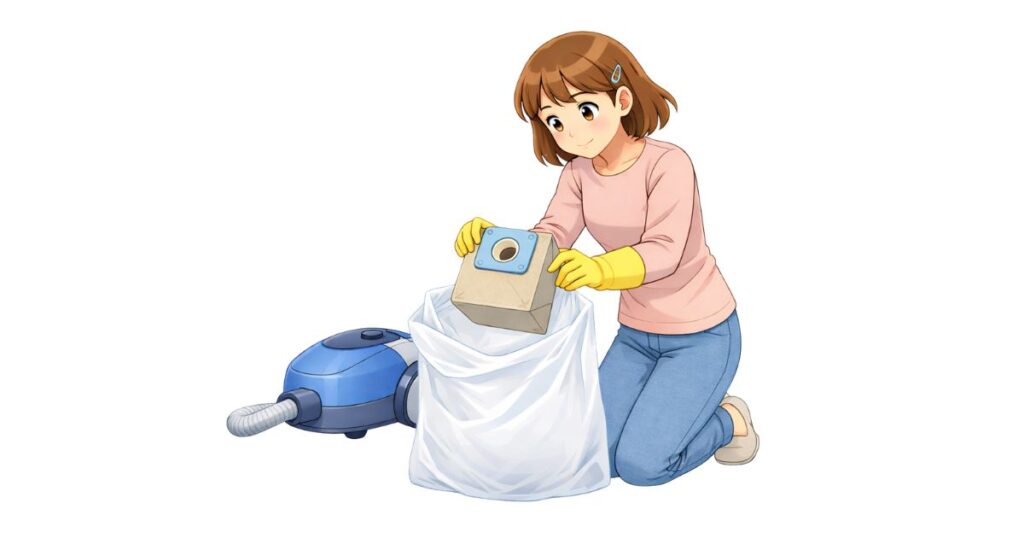 時間が経つほど、内部で動き出して隙間から出てくるリスクが高まります。気づいた時点でなるべく早く処理するのが基本です。すぐに対応できない場合は、掃除機の電源を抜いた状態で動かさずに置いておき、できるだけ早いタイミングでパックやダストボックスの処理に移りましょう。