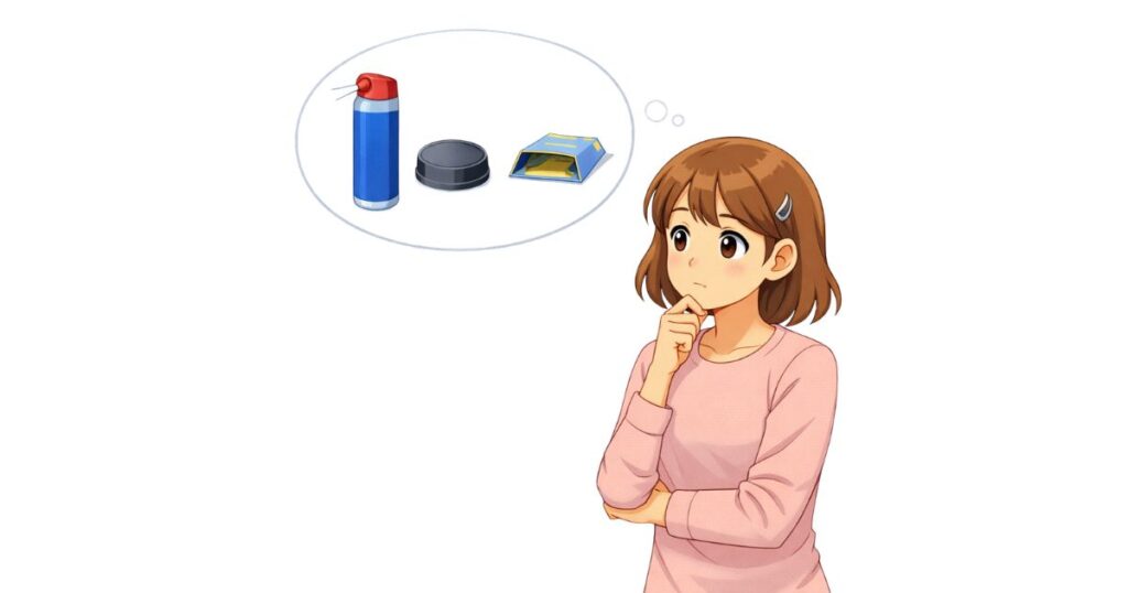 スプレーで仕留めた後の対処については、仕留めた後の後始末の記事も参考にしてください。