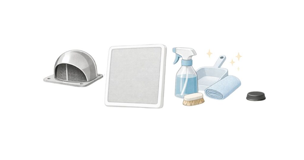 物理的なふさぎ(フィルター・カバー)と環境の管理(汚れ・毒餌)を組み合わせるのが基本です。