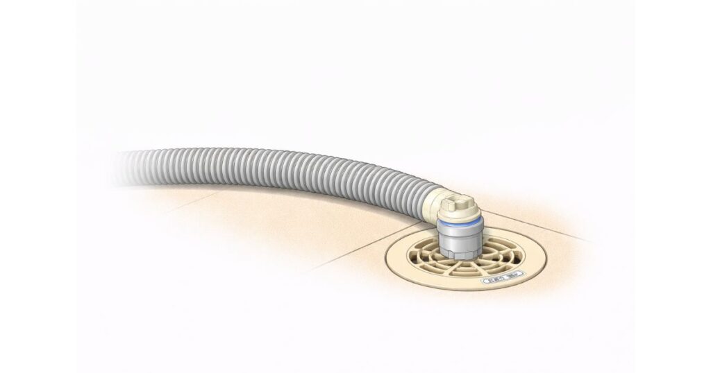 排水ホースは経年劣化で亀裂・変形・接続部のゆるみが生じることがあります。